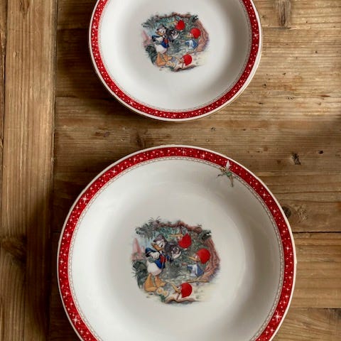 Selger firkløver juleservise middagstallerkenen og frokosttallerken. Kan også byttes mot eldre utgave av Firkløveren sin Disney jul.