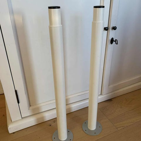 4 stk IKEA Ben bordben med justerbar høyde fra 60 til 90 cm. Farge hvit. Laget i slitesterkt materiale egnet for bruk som støtte til bord eller andre møbler.