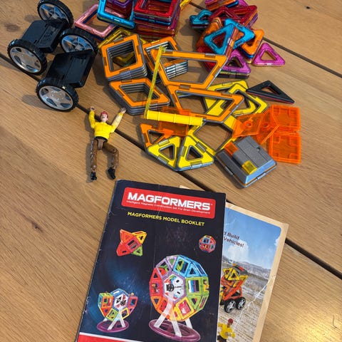 Lag 3D-strukturer med Magformers, og utvid dem deretter ved hjelp av tilbehør som kan festes på. Følg trinnvise instruksjoner og utvikle farge- og formgjenkjenning, finmotorikk og problemløsningsevner.