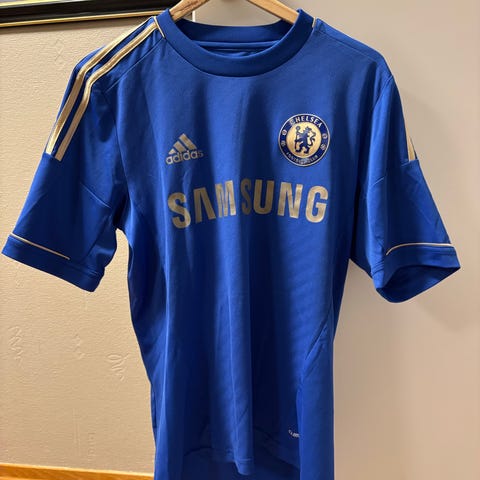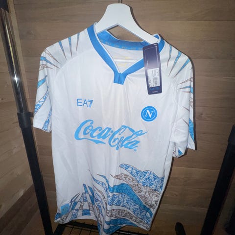 Nike Norge Fotballtrøye i størrelse M for menn. Trøyen er hvit med blå detaljer og har Norges fotballforbunds emblem på brystet. Laget i Dri-FIT-materiale for komfort under aktivitet.