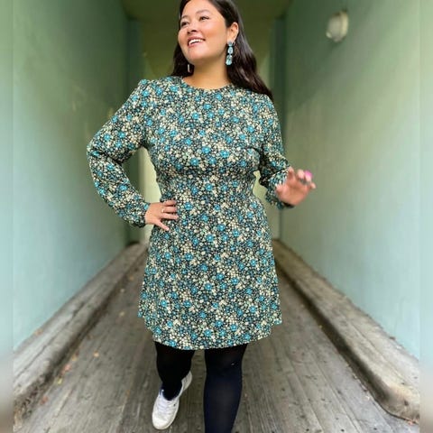 Fin retro Kjole, passer de flest med belte på, one Size. Polyester, belte er ikke av skinn.