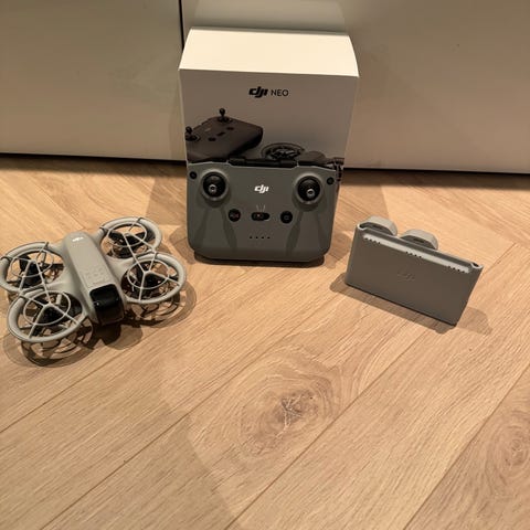 Selger DJI Neo autonom drone med mye ekstrautstyr. Perfekt for nybegynnere eller hobbybruk.