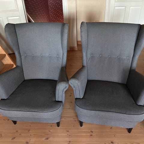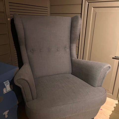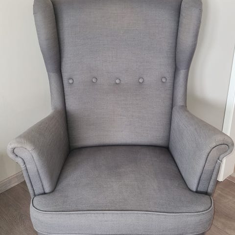 Lenestol fra Ikea god brukt, men har mye bruk igjen! Stolen har grått tekstiltrekk, innebygd fothviler og kan legges godt bakover. (Lenger enn på bildet.) Målene er hentet fra Ikea og ikke målt selv.