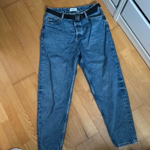 Tom Wood pinstriped dressbukse i 100% ull. Navyblå med gull-brune striper. Utrolig kule og stilige. Nypris rundt 3500,-