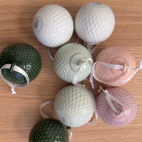 Julekule fra Alessi. 9 cm i diameter. Knapt tatt ut fra esken, og har kanskje hengt den opp én jul i løpet av årene jeg har hatt den.