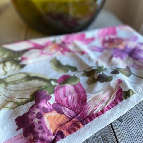 2 stk Putetrekk med blomsterprint i duse lilla toner. Stoffet har et mønster av store blomster i nyanser av lilla og jordfarger. Selges samlet for 125kr