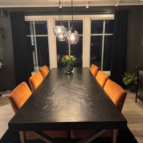 Dalton spisebord 180 sort/sort-grå metall ben fra Fagmøbler. Kjøpt i 2018. Pent brukt. Utgått fra butikk.