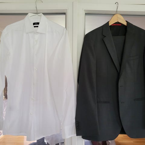 Dressmann jakke i blå farge, laget av merinoull. Passer til herre i størrelse 46. Jakken har en klassisk design og egner seg til formelle og uformelle anledninger.