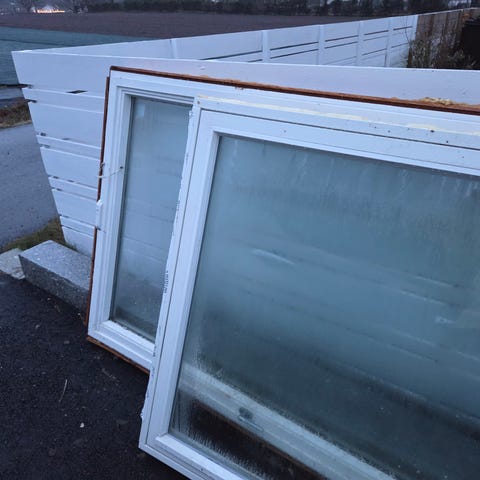 Koblede vinduer fra ca 1976 gis bort ved henting. Vinduene er i brukbar stand, men ble skiftet for å oppnå mindre varmetap. Tre av den største typen har fransk sidelufting, men denne kan enkelt fjernes. Vinduene er velegnet for drivhus/orangeri. Vinduene har vært lagret inne, men noen har stått ute med presenning over de siste 3 måneder.