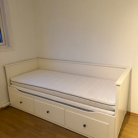 Ikea Hemnes til salgs. Dagseng med 3 skuffer/2 madrasser, 80x200 cm. Med denne dagsenga kan du raskt og enkelt re opp til overnattingsgjester. Bare trekk ut sengebunnen, så får du ei dobbeltseng på et blunk.