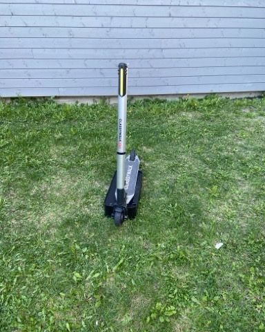 Elektrisk hjul med tilknyttede ledninger for tilkobling. Hjulet har et dekk med mønster og en metallisk felg. Passer til elektriske kjøretøy eller roboter som krever dette hjuloppsettet.