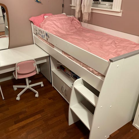 Link til seng: https://www.ikea.com/no/no/p/smastad-loftsseng-hvit-hvit-med-skrivebord-med-4-skuffer-s99428866/