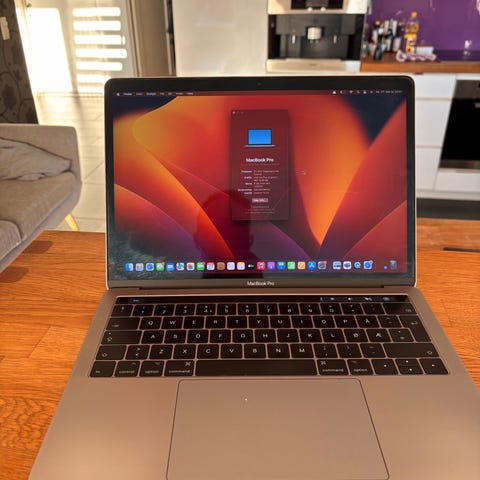 Apple MacBook Pro 13-tommers bærbar PC med macOS Catalina. Utstyrt med 2,5 GHz dual-core Intel Core i5-prosessor, 8 GB 1600 MHz DDR3-minne og Intel HD Graphics 4000 grafikk.