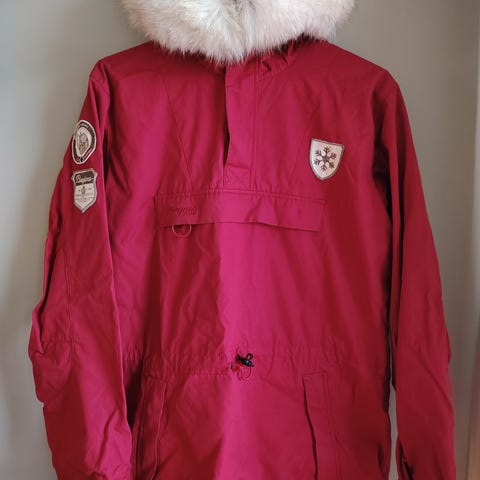 Retro / vintage rød anorakk str S lite brukt. Litt krøllete etter å ha ligget i skapet så lenge.