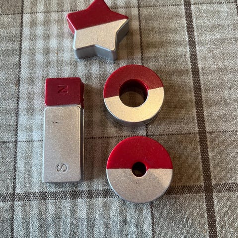 Selger magneter som kan brukes til å bygge figurer. Det er firkanter og trekanter. Det er også med fire hjul slik at man kan lage en bil. Selges for 100 kr.