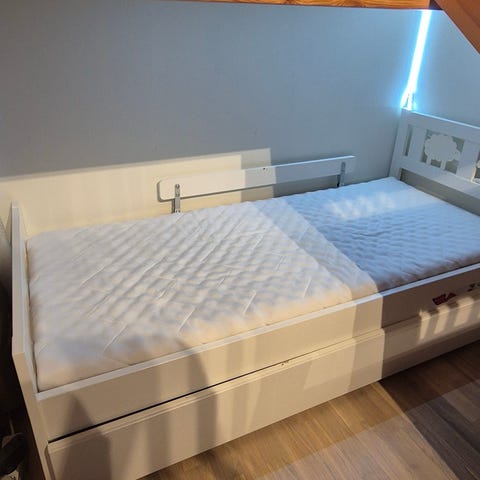 Seng gis bort som den er med madrass og (nesten) ny overmadrass!