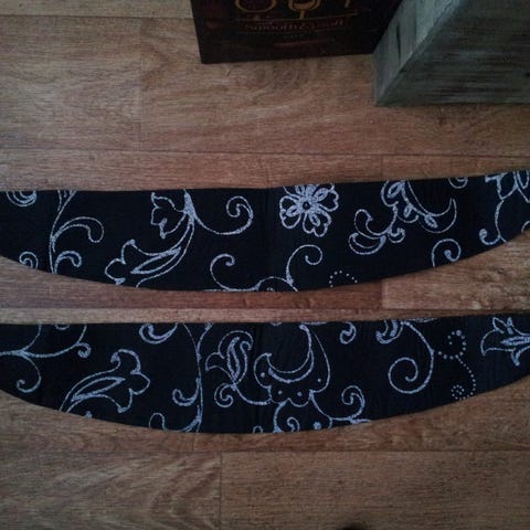 Selger 4 lilla bånd til gardiner. Båndene avsluttes med en blank «krystall». Båndene er 120 cm lange og de er tvinnet.