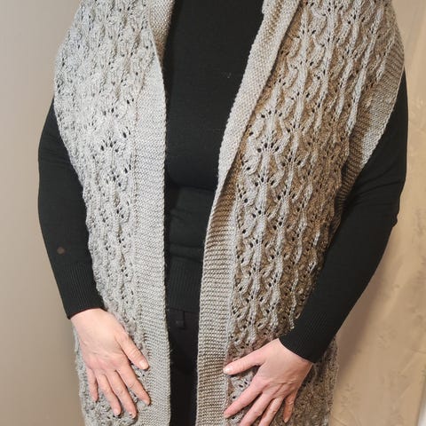 Hjemmestrikket skjerf, lik Sophie Scarf fra Petite Knit. Jeg har strikket det lenger og smalere, da jeg foretrekker denne passformen🧶