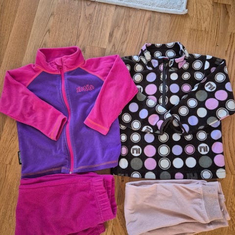 Selger en fin klespakke som inneholder 1 softshelljakke med fleece/teddystoff inni fra skogstad, 1 skalljakke fra reimatec, 1 fleecegenser og softshelldress fra Okidoki.
