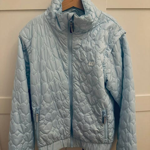 Pent brukt lilla jakke med rosa detaljer, str 3xs.
