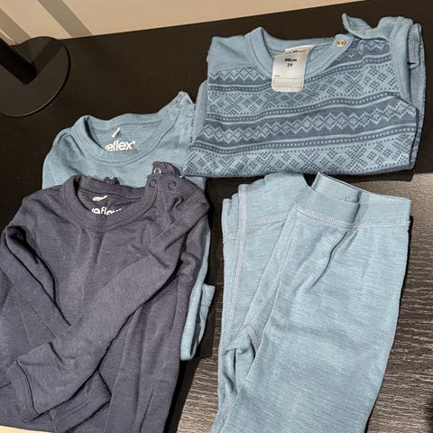Tre pent brukte ullbodyer. To i størrelse 98 og én i 86/92, men stor i størrelsen. Hust & Claire, Name it og Newbie.