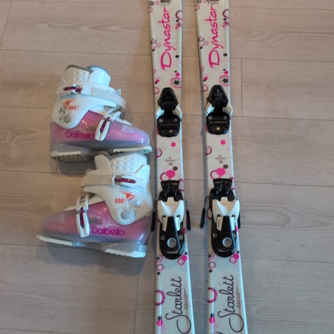 Alpinski i lengde 100cm og alpinstøvler i størrelse 200-215 (31-34) selges samlet eller hver for seg.