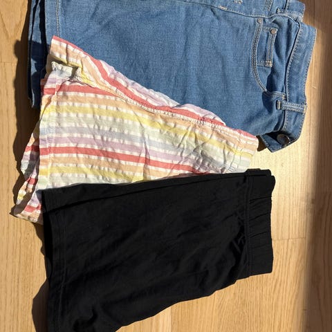 Klespakke 146/152, mange fine plagg, 10 t-shirts, 2 skirts, en kjole, en buksedress, 7 bukser, 12 overdeler - langarmede, ikke alle plaggene avbildet.