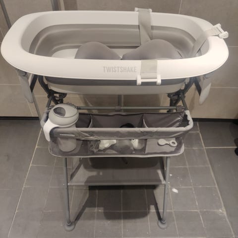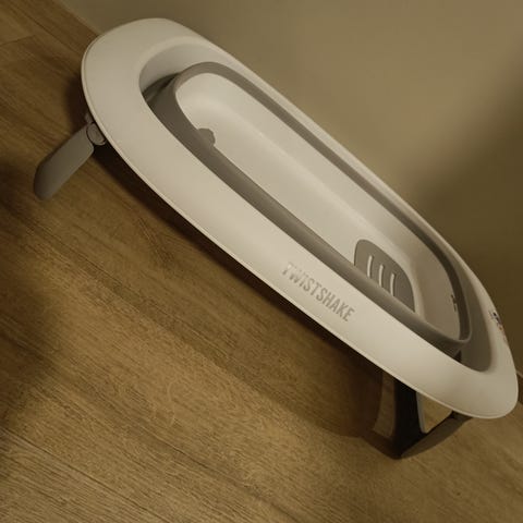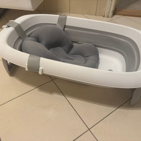Sammenleggbar badebalje fra twistshake med nyfødtinnlegg.