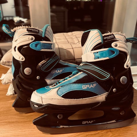 Graf skøyter for barn i størrelse 31-34. Selges da foten er blitt for stor.
