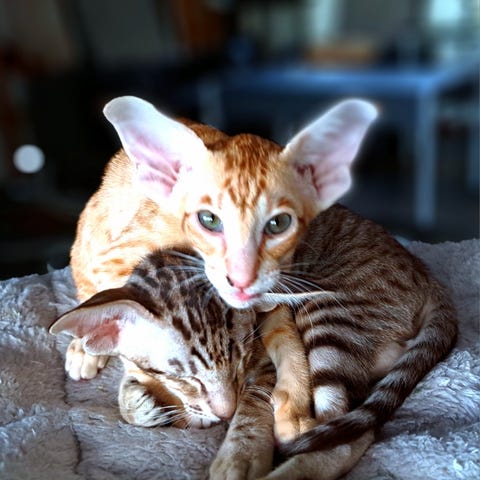 Far: Amun – siamesermasket, brush-pels, Peterbald