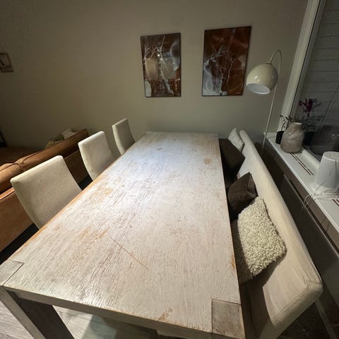 Bordet er veldig godt passet på og har plass til minimum plass til 6 stoler.