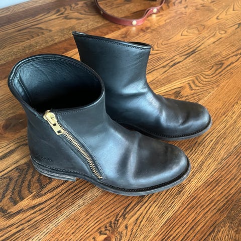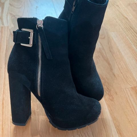 Sorte boots med snøring og spenne. Str 38, fra Anna Field, syntetisk materiale.