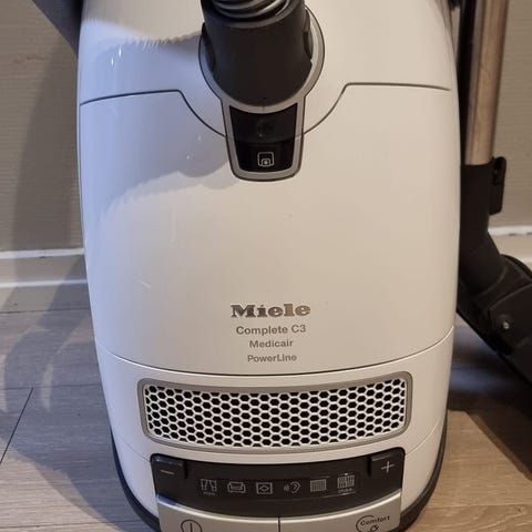 Electrolux støvsuger med fleksibel slange og teleskoprør. Modellen har hjul for enkel transport og standard gulvmunnstykke. Slangen og røret er festet med tape. Funker greit