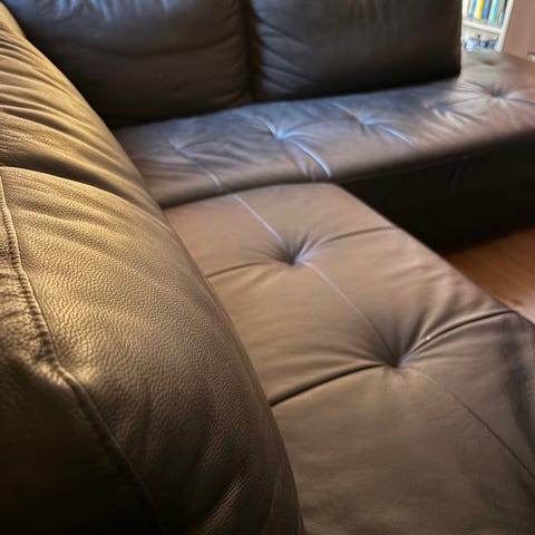 Strøken hjørnesofa, skinn