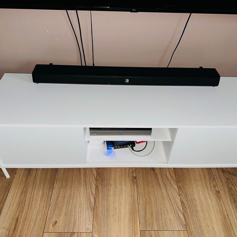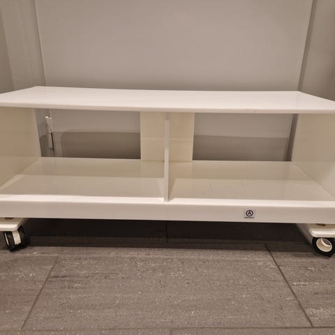 Dønn strøken tv-benk på hjul av typen Benno fra IKEA. Her slipper du å montere selv👍