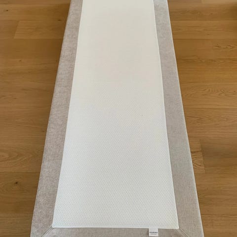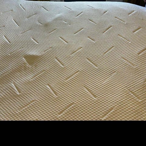 Ny overmadrass lagt på sengen men aldri brukt