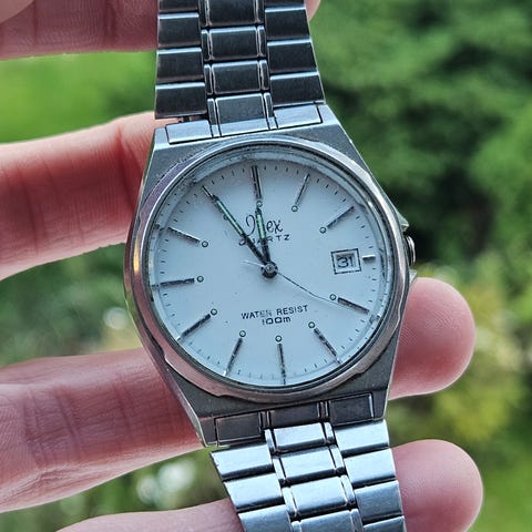 Denne meget pene dressklokka selges ettersom den ikke blir brukt. Klokka er quartzdrevet og har nylig fått nytt batteri. Den er godt brukt, noen merker, men i god stand. Jeg aner ikke hvor gammel den er, men den fungerer veldig fint. Kommer på nyere, pen, svart skinnreim.