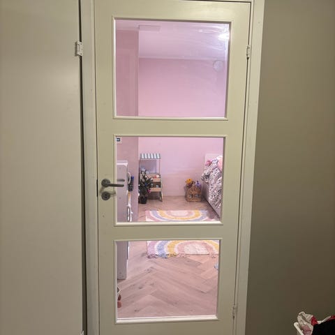 Dør med sidefelt og glass fra 2019, selges pga oppussing. Døren er 82 cm bred og sidefeltet 40 cm. 204 cm høy. Mål på karm er 130 x 210. Tror modellen heter Easy GW1. Karm og håndtak medfølger.