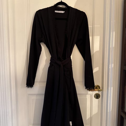 Skjult glidelås i ryggen, og mange fine detaljer. "Tung i stoffet" som gjør den flatterende på.