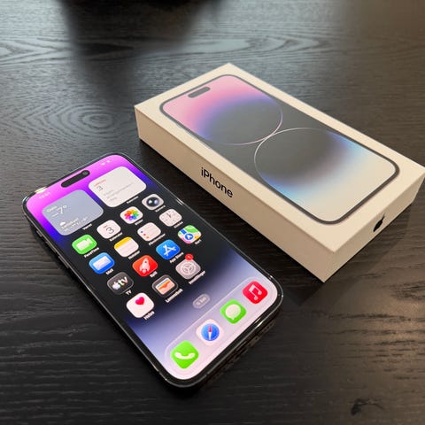 iPhone 14 Pro Max i Deep Purple (mørkelilla) selges