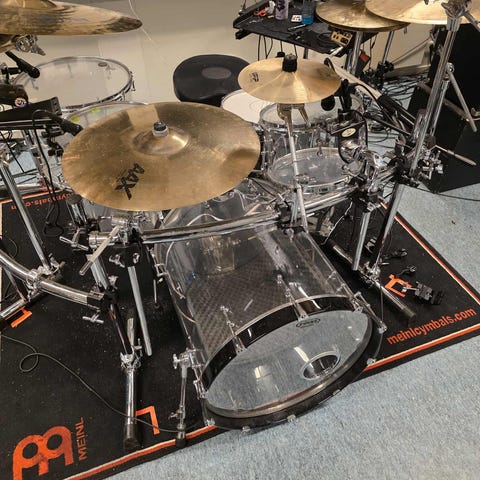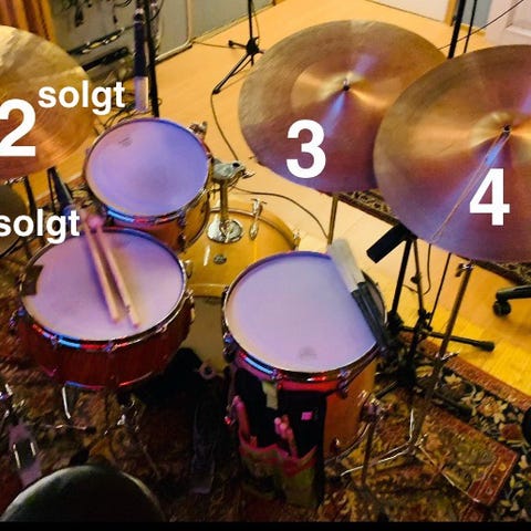 Bigbeat trommesett i svart farge. Settet inkluderer basstromme, skarptromme, to rack-trommer, gulvtromme, hi-hat og crash cymbaler.