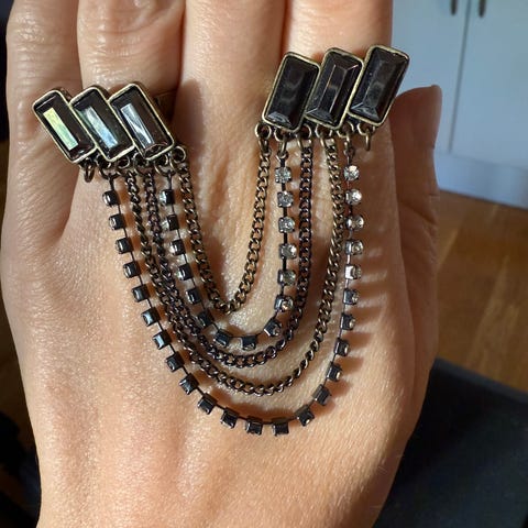 Tanzanitt marquise og Peridot . 14 k. hvitt gullbelagt. 925 sølv. Str.58💙💚
