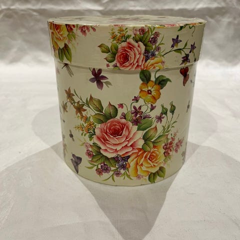 Fin pynteboks med lokk. I metall med bilde av engell på lokket.