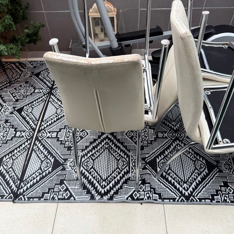 Eating table in very good condition, that can hold till 12 persons if you add the extenders. Plus 6 chairs frome Jysk, some of them have some little marks.