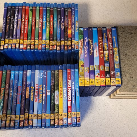 Er en del riper og slitasje på boksen. Noen plater har merker, men de fungerer som de skal.