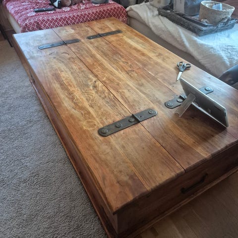 En praktisk oppbevaringsplass under lokket som bord, eller kiste