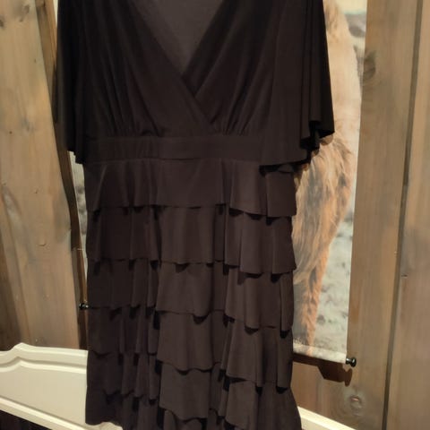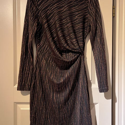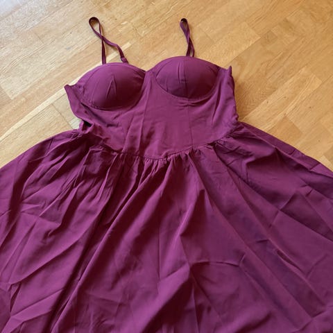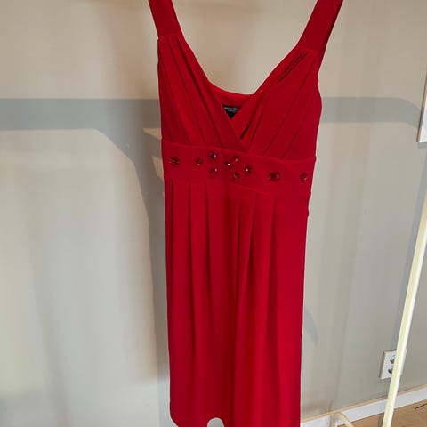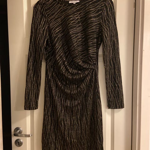 Festkjole i størrelse L, laget av satin materiale. Bare prøvd på og hengt i skapet. Så selger derfor videre da den ikke passer meg lengre.