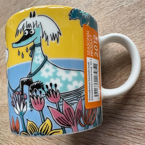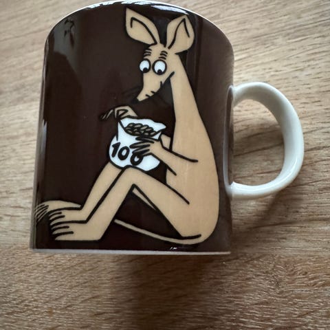 Arabia Mummikopp 3dl «Snusmumrikken» med det sjeldneste stemplet selges. Koppen ble produsert i perioden 2002-2014, men kun kopper produser i siste produksjonsåret, 2014 har dette stemplet.