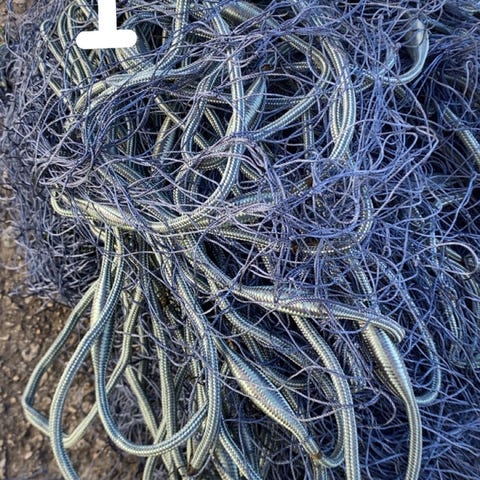 Fiskegarn med bredde 1,5 meter og total lengde 30 meter. Maskestørrelse er 64 mm. Nettet er for fiske.
