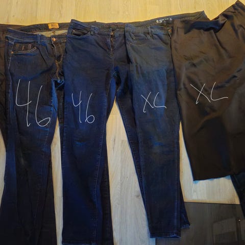 Selger en klespakke med 5 bukser. Alle buksene er str 38/40, og tilsvarer en M/L. Alle buksene er pent brukt, de er hele og fine. Selges da de ble for store for meg.